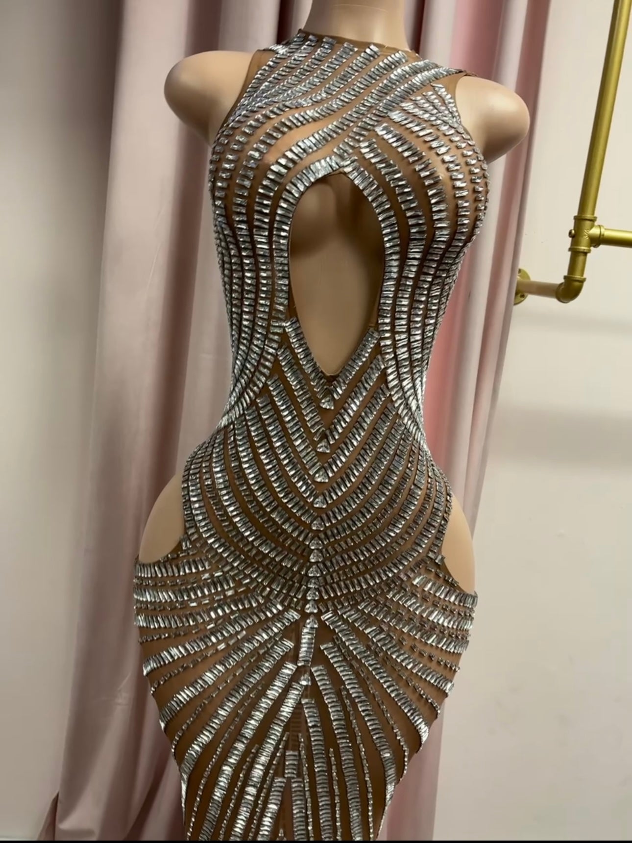 Celebrate your birthday in our Crystal gown dress minimum stretch